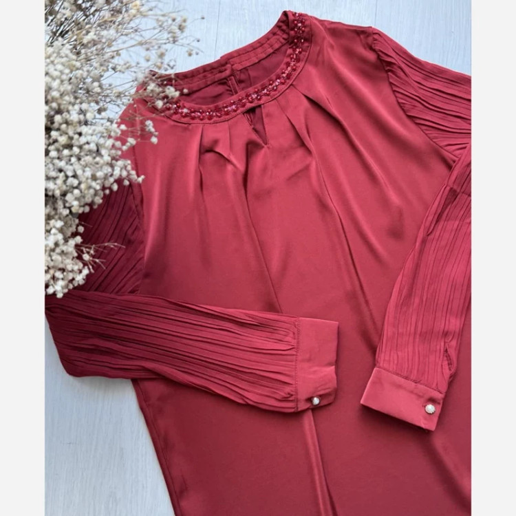 شومیز مجلسی ابریشم وارداتی زرشکی