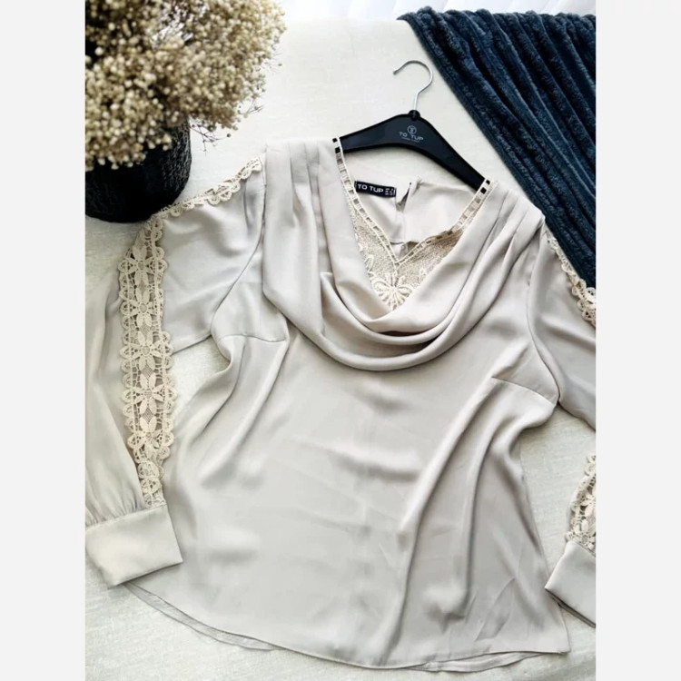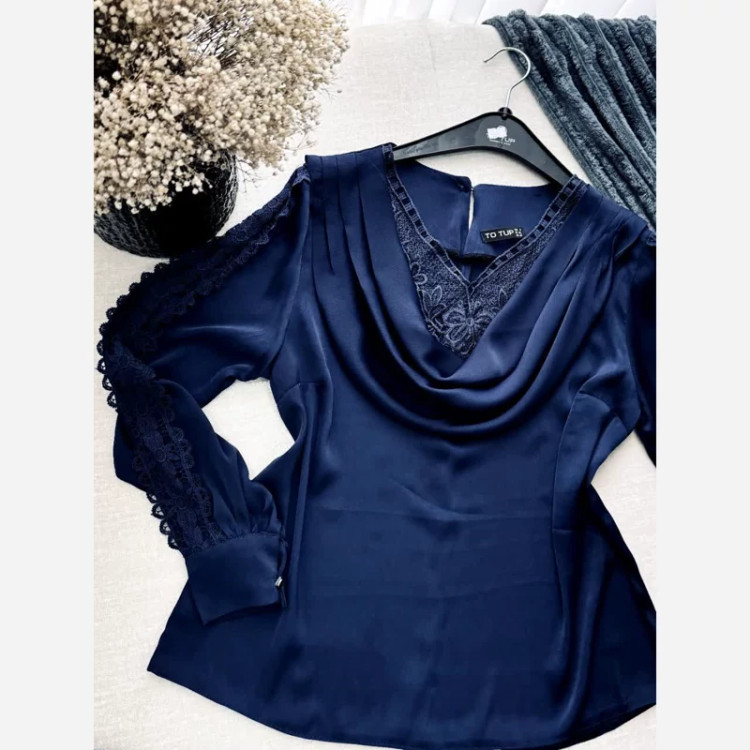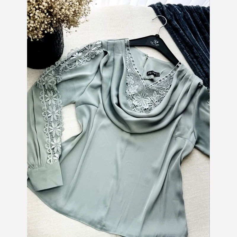 بلوز مجلسی یقه و آستین گیپور زنانه