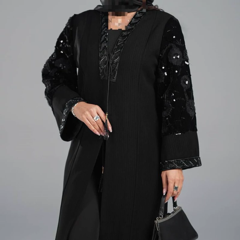 مانتو مجلسی بلند جواهردوزی کرپ لمه مشکی